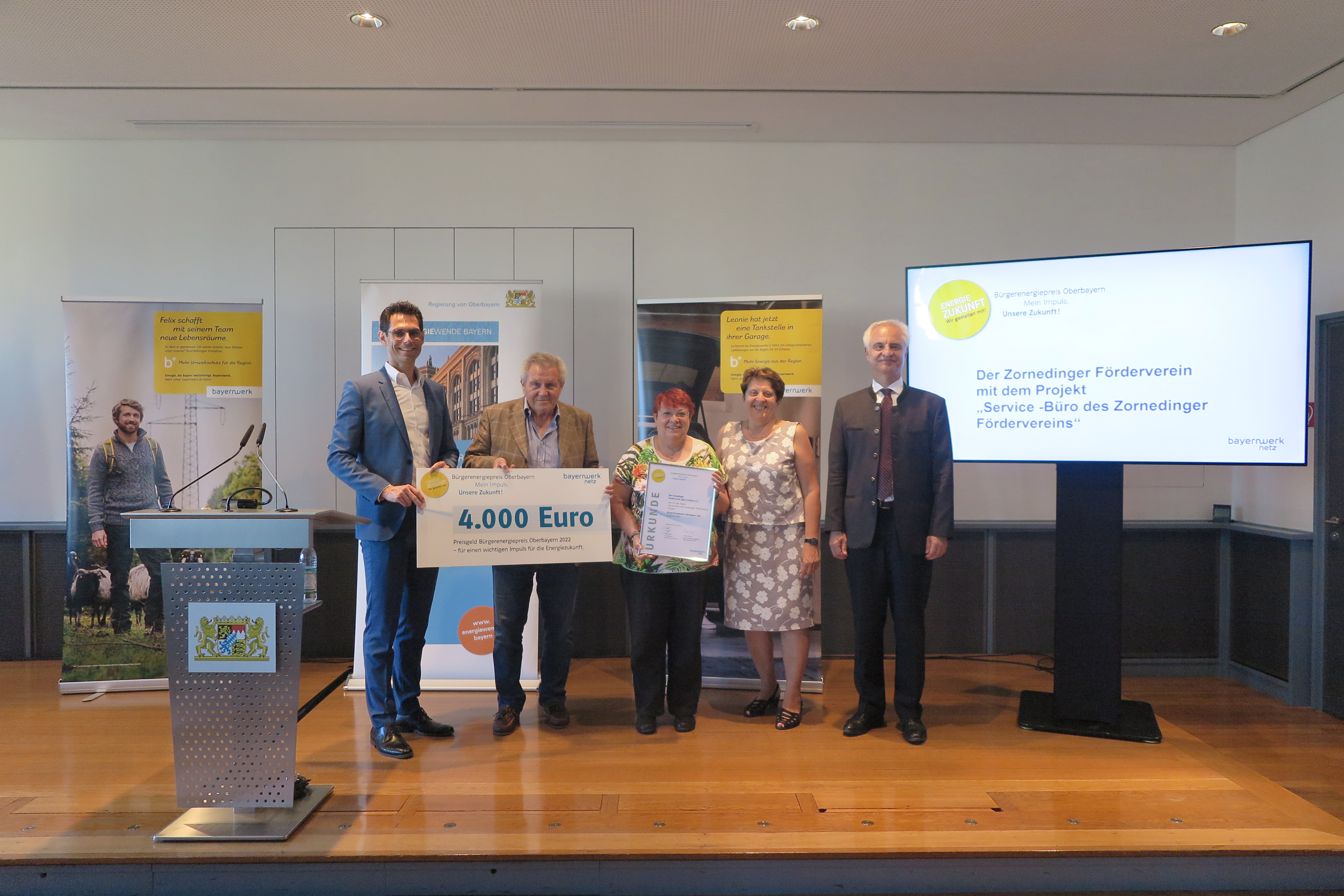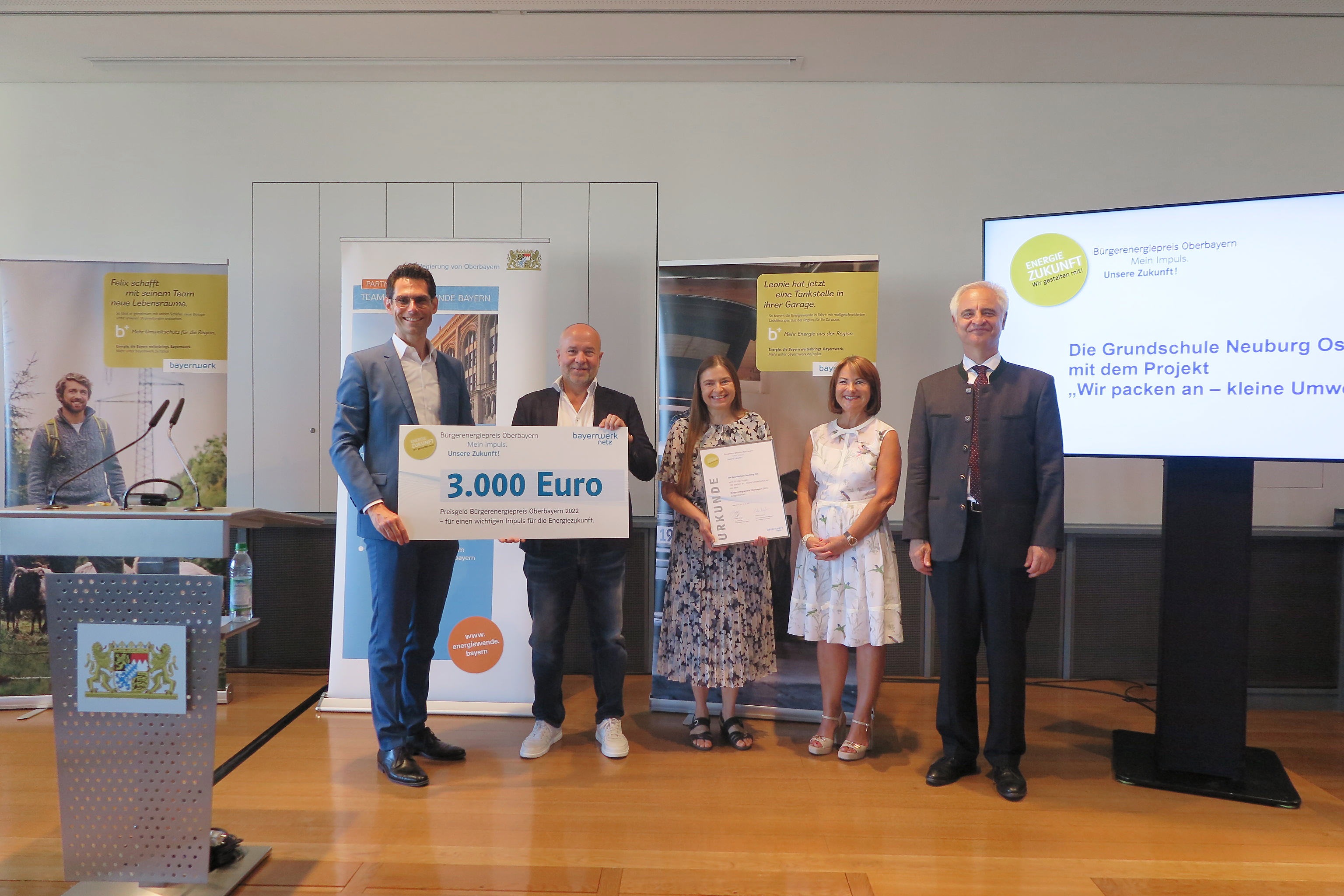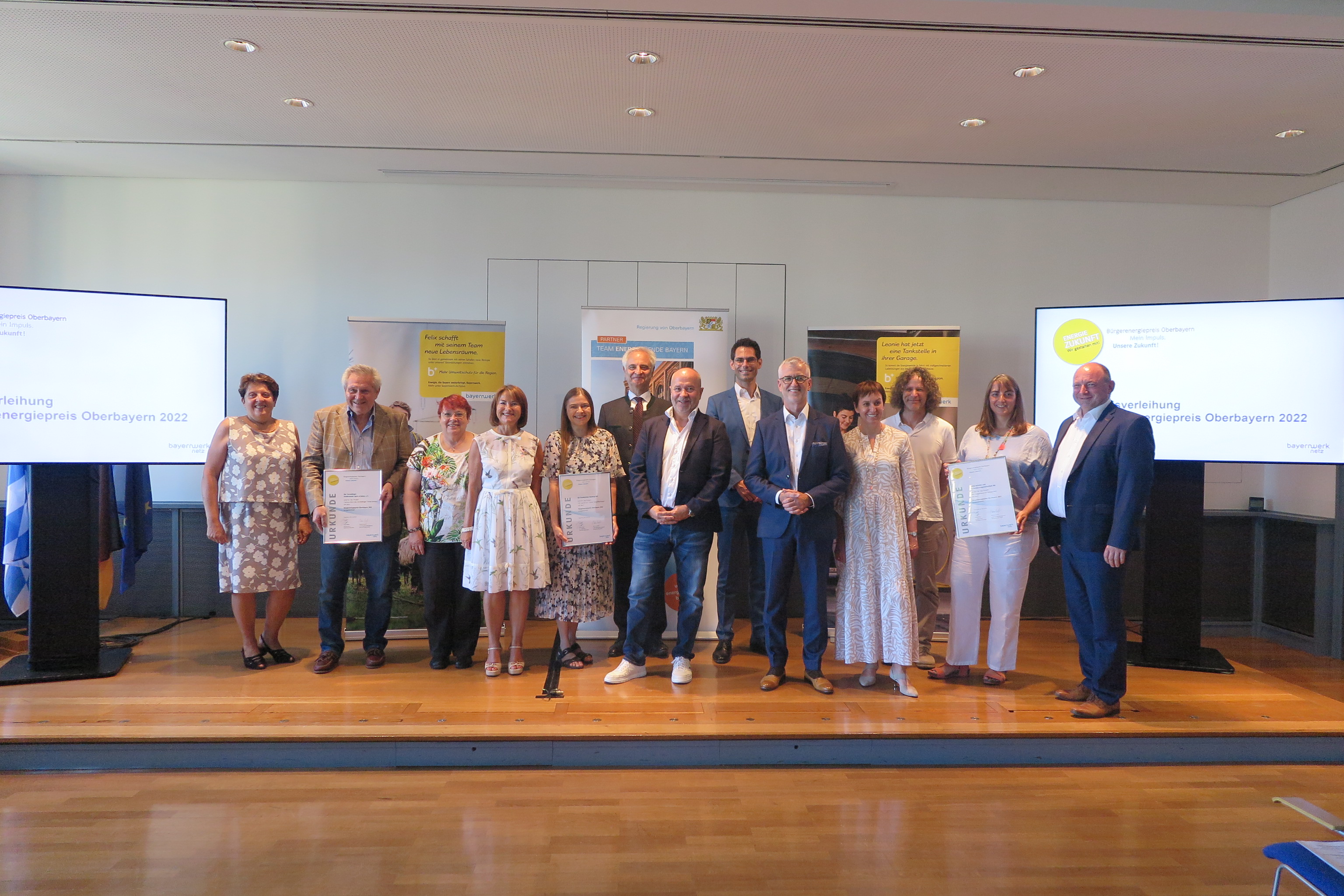 Am 19. Juli verliehen Regierungspräsident Dr. Konrad Schober und Markus Leczycki, Leiter Kommunalmanagement der Bayernwerk Netz GmbH, im großen Maximiliansaal der Regierung von Oberbayern die Bürgerenergiepreise. Die Preise sind mit insgesamt 10.000 Euro dotiert und werden seit fünf Jahren für den Regierungsbezirk von der Bayernwerk Netz GmbH in Kooperation mit der Regierung von Oberbayern bedacht.