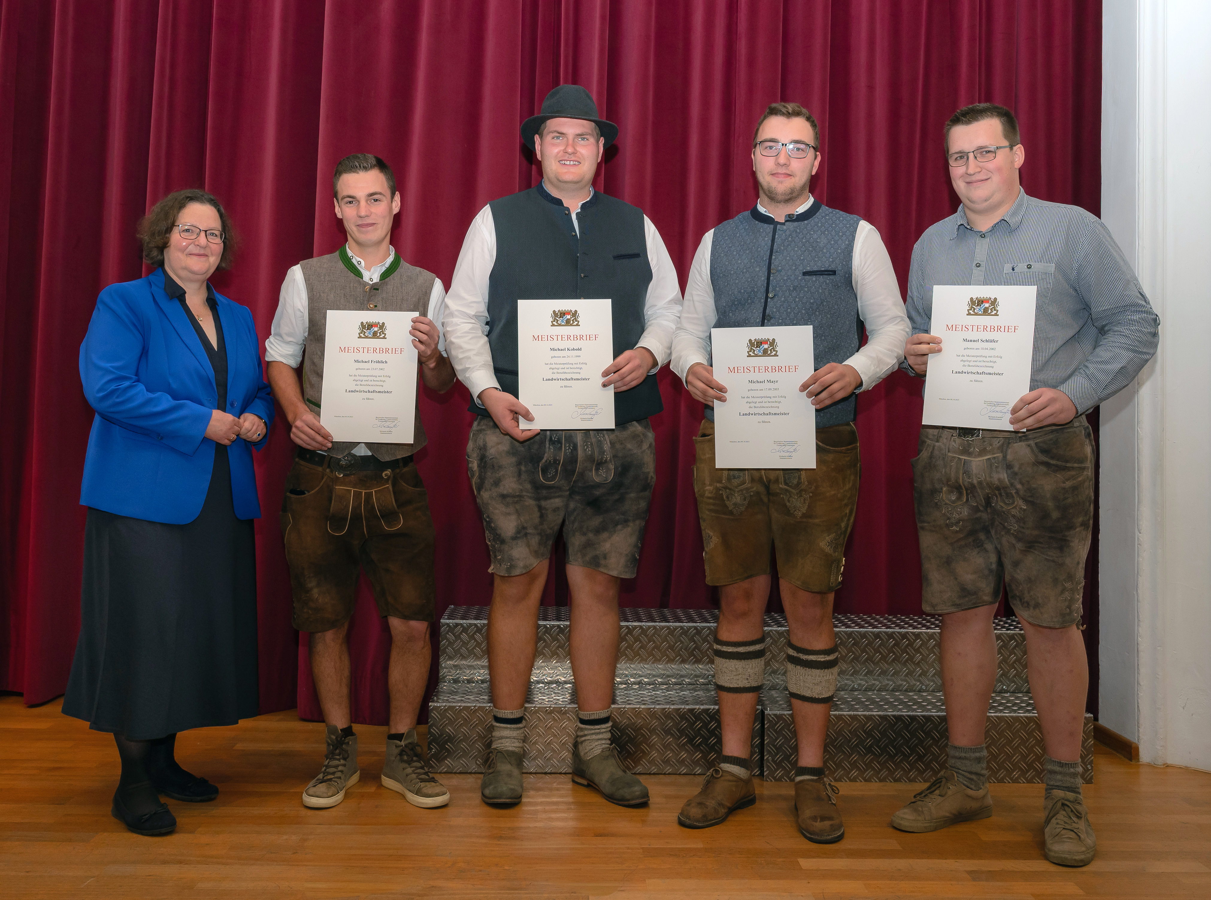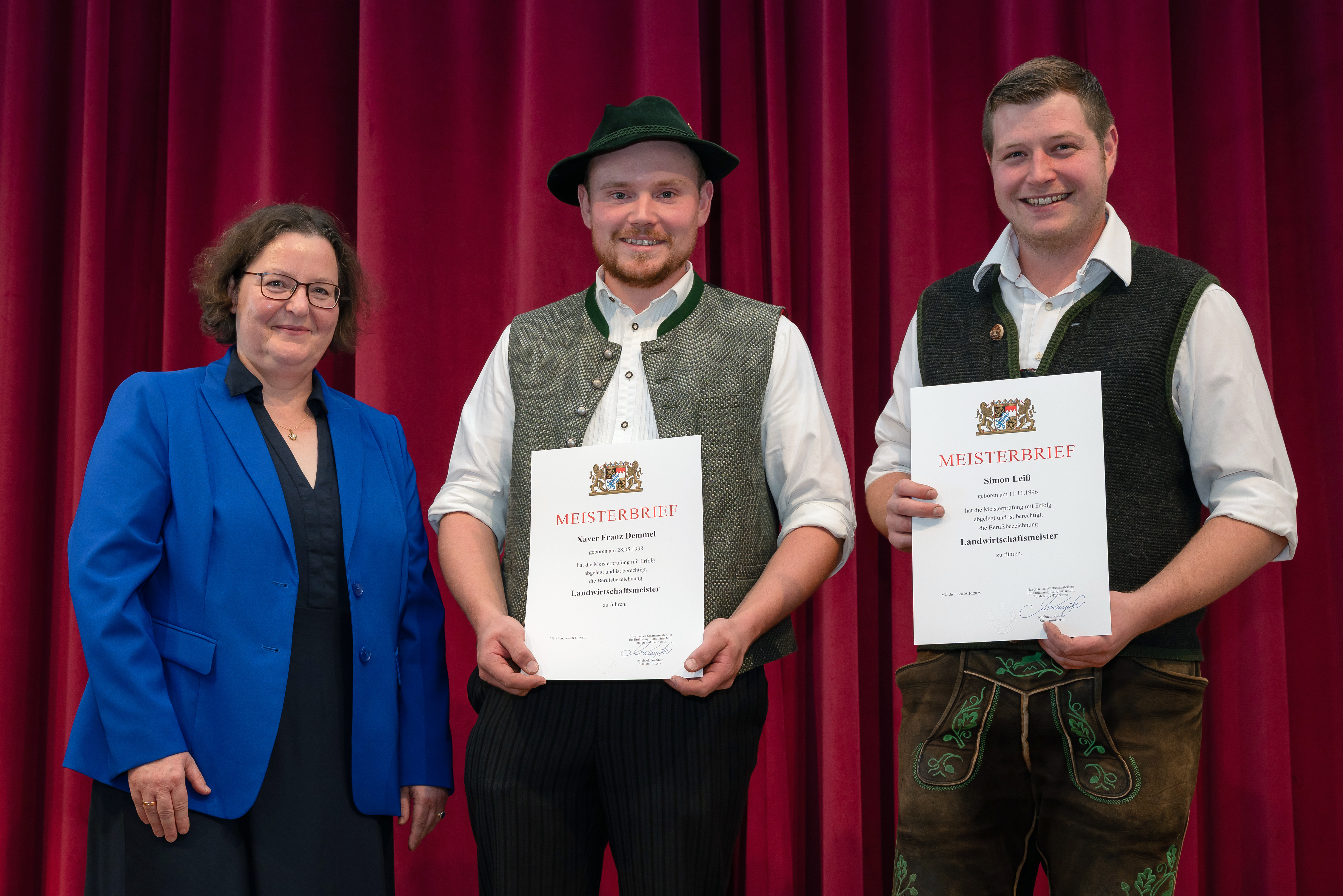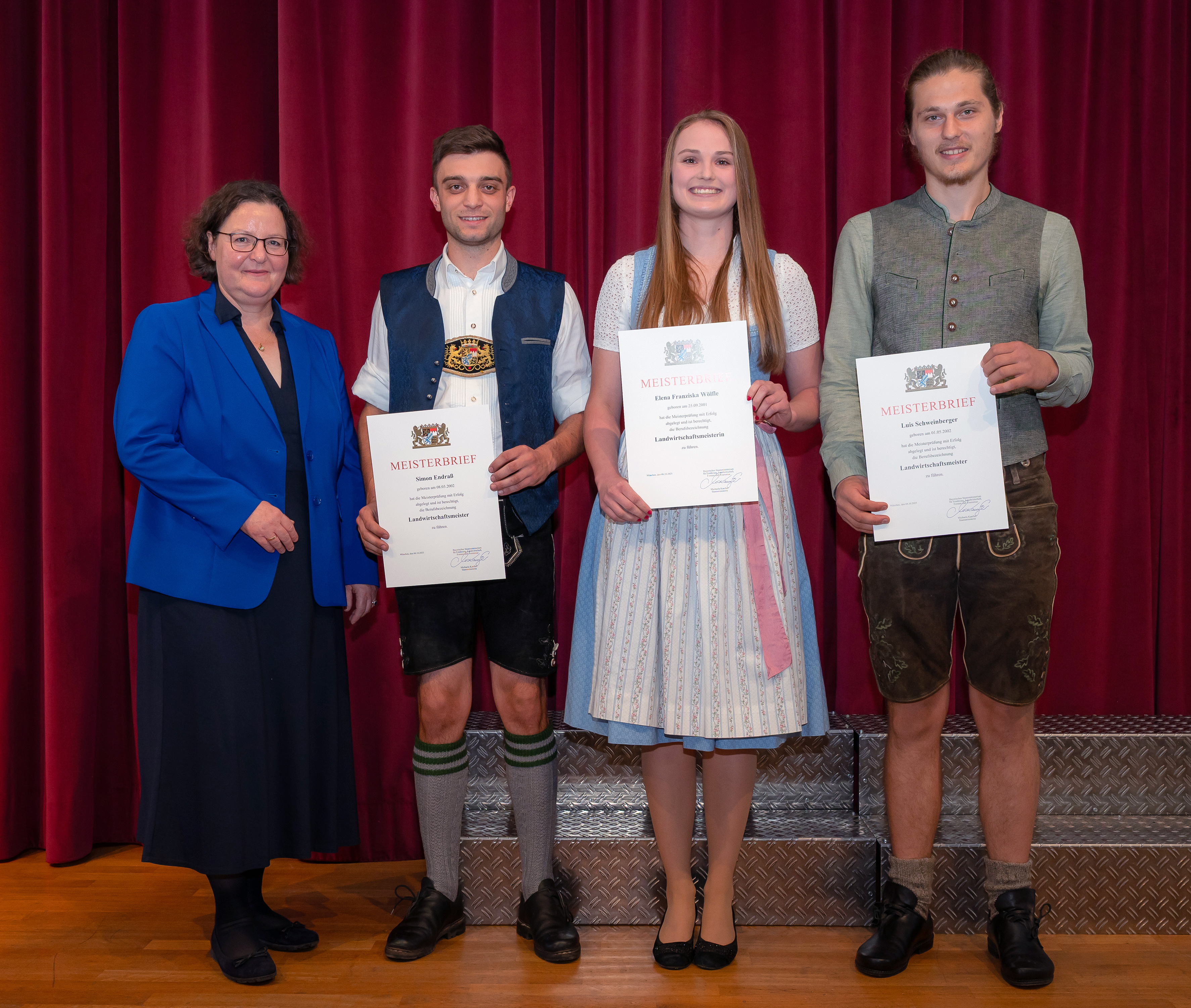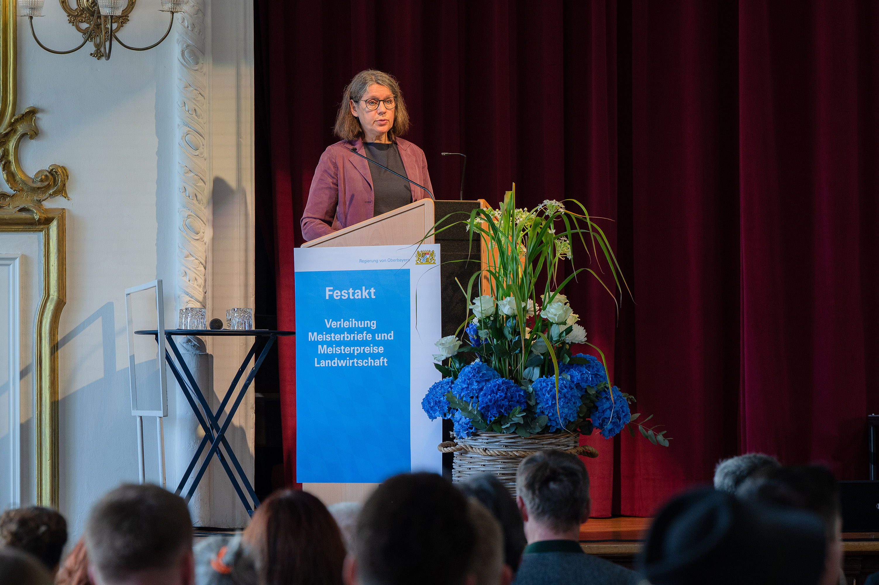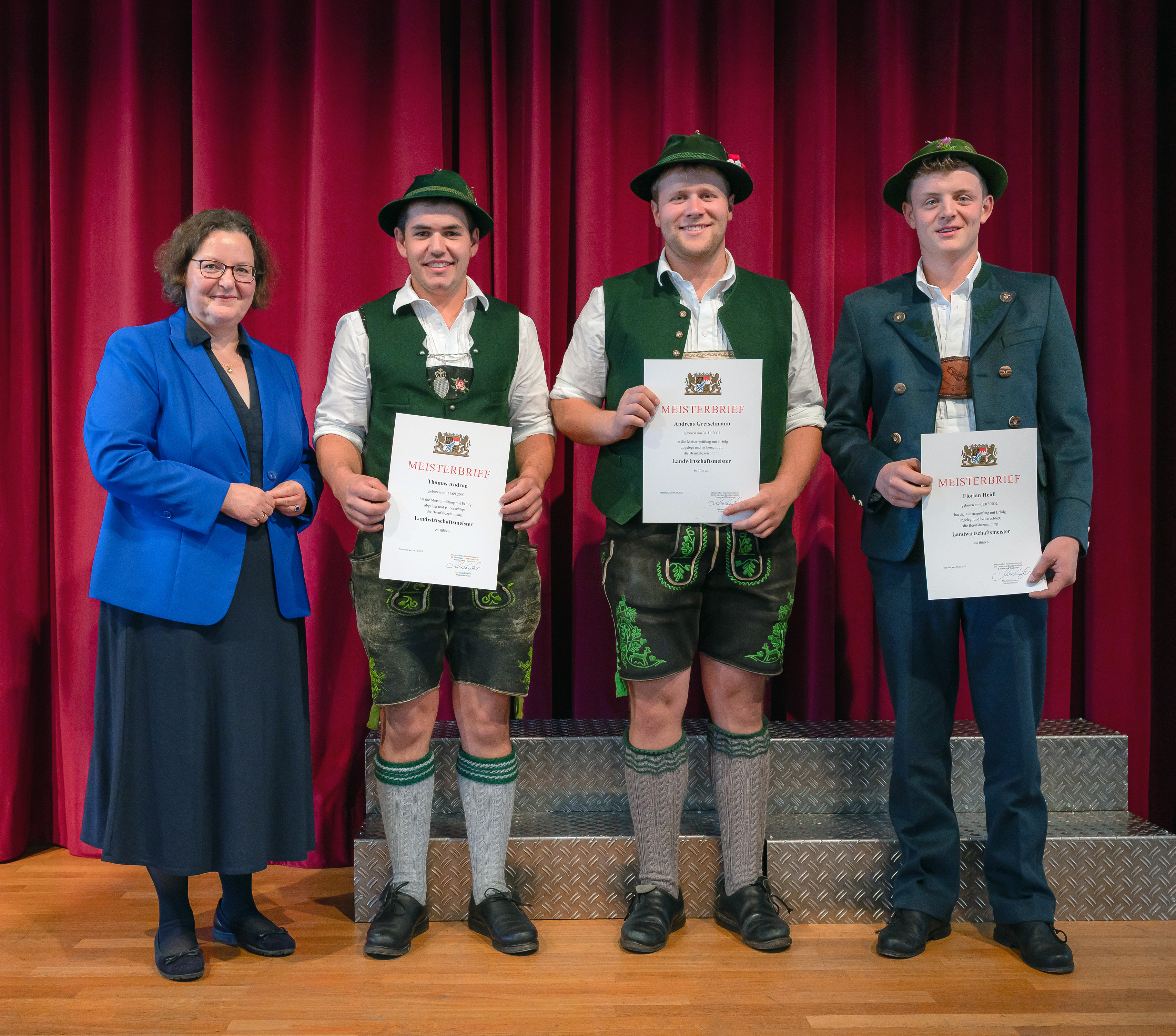 97 Absolventinnen und Absolventen haben in diesem Jahr ihre Meisterprüfungen in der Landwirtschaft an den Staatlichen Landwirtschaftsschulen in Oberbayern bestanden. Im Rahmen eines Festakts in Holzkirchen beglückwünschte Regierungsvizepräsidentin Friederike Fuchs die frisch gebackenen Meisterinnen und Meister und betonte die Bedeutung der Landwirtschaft: „Rund ein Viertel der landwirtschaftlich bewirtschafteten Fläche des Freistaats Bayern liegt in Oberbayern. Sie alle sorgen dafür, dass diese auch weiterhin zukunftsfähig bewirtschaftet wird. Nun gilt es, Ihre Ideen und Vorstellungen in die vorwiegend elterlichen Betriebe einfließen zu lassen.“