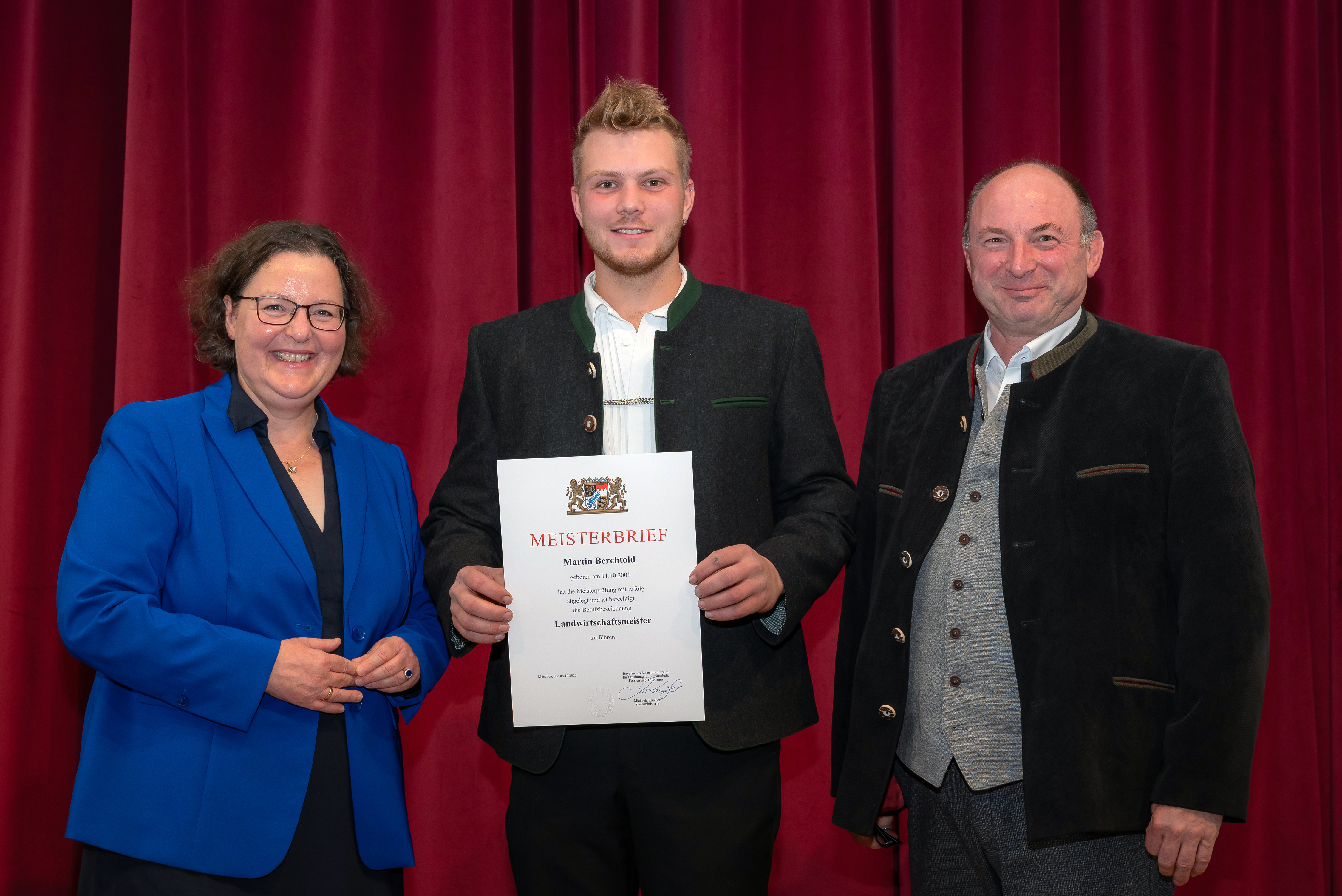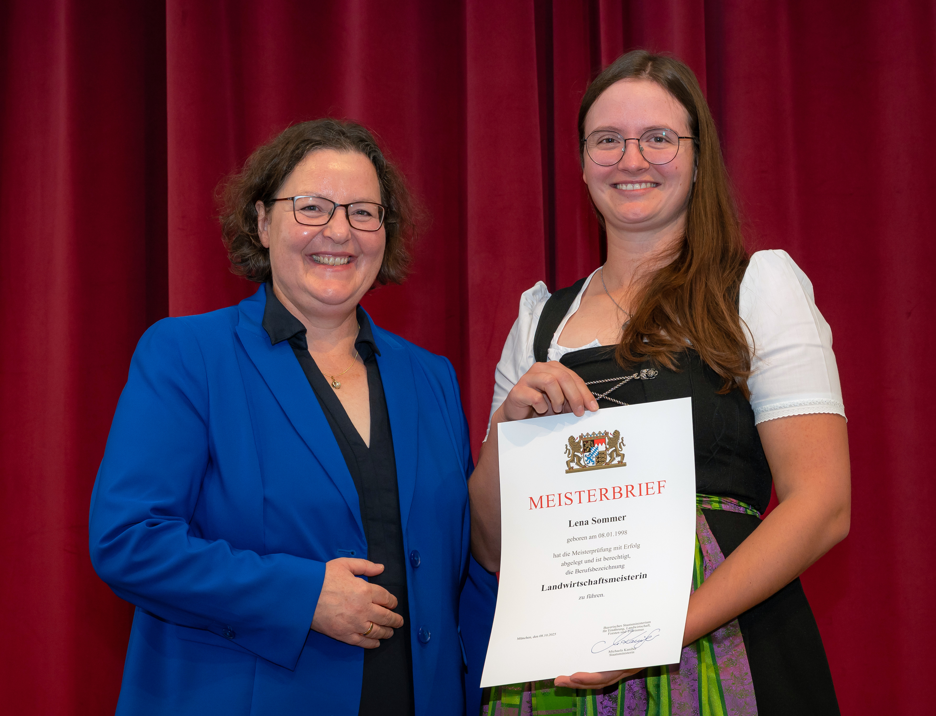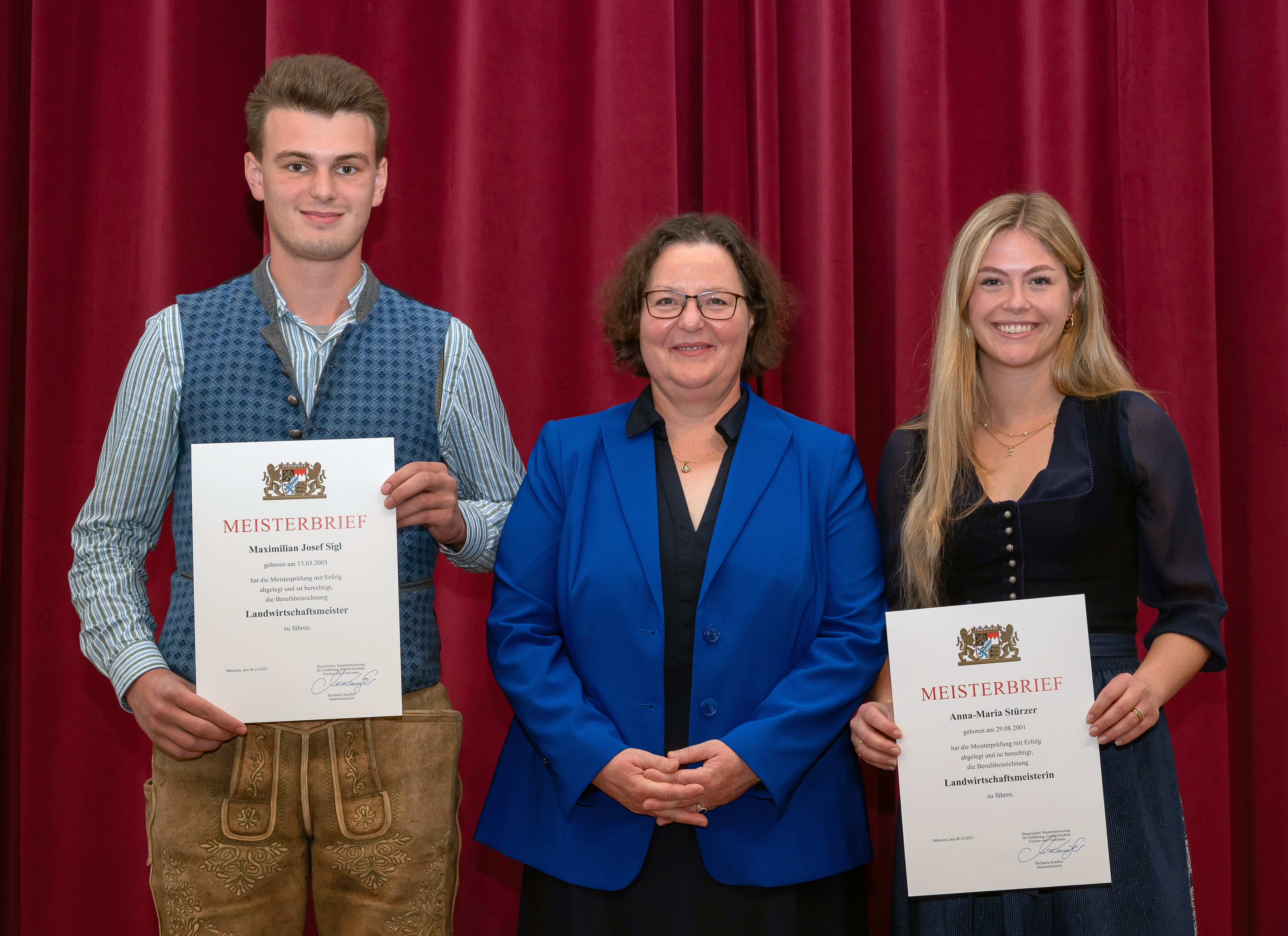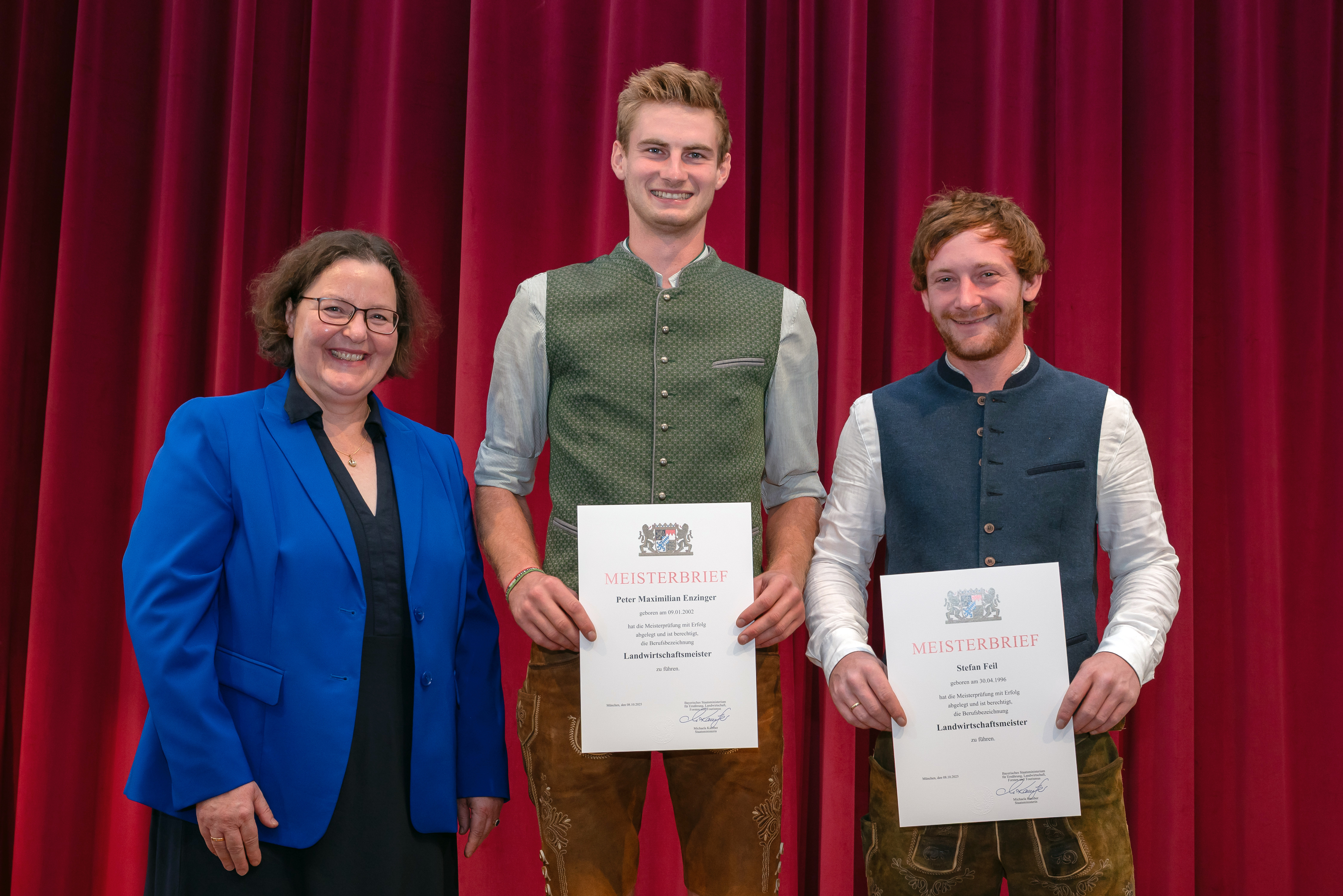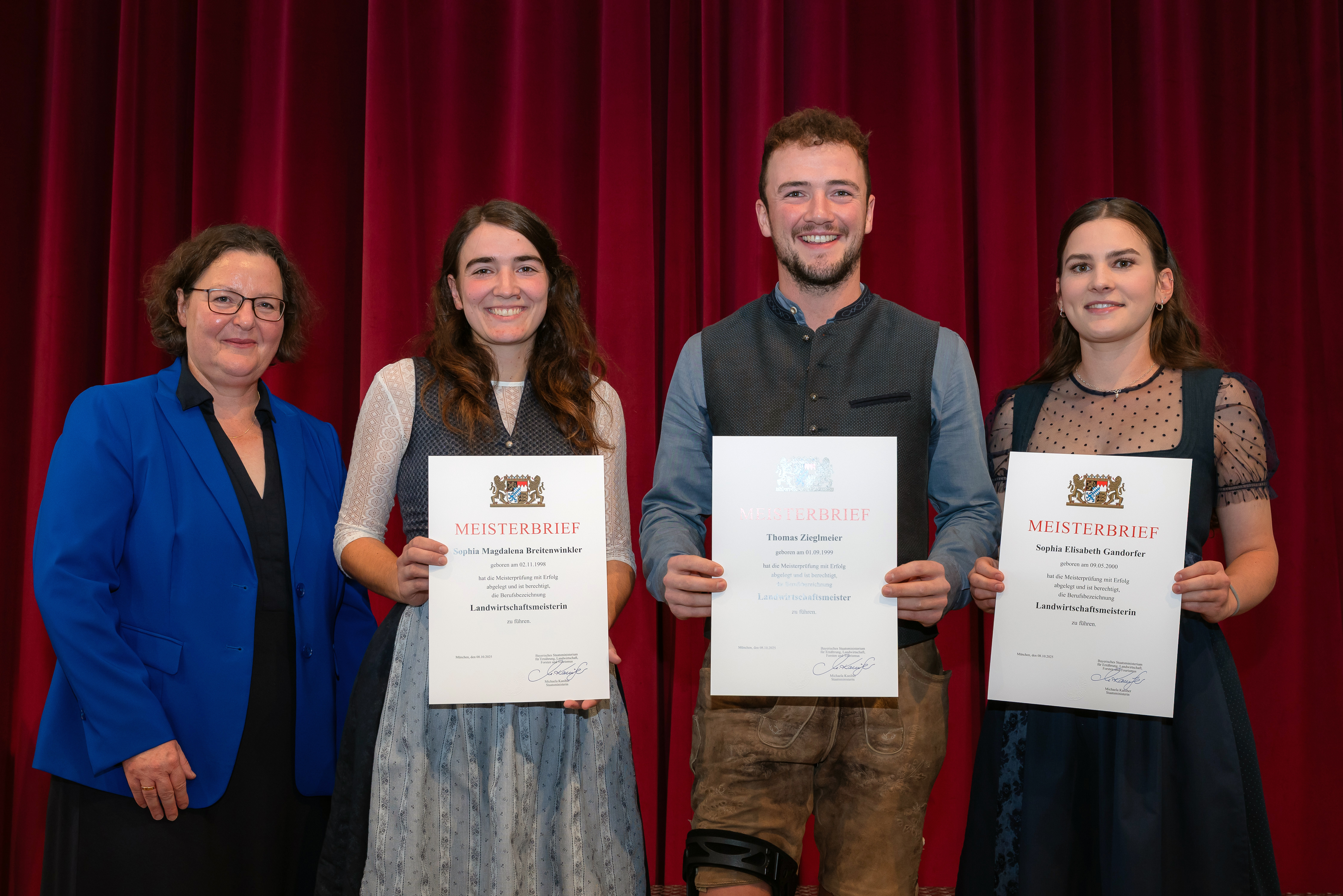 97 Absolventinnen und Absolventen haben in diesem Jahr ihre Meisterprüfungen in der Landwirtschaft an den Staatlichen Landwirtschaftsschulen in Oberbayern bestanden. Im Rahmen eines Festakts in Holzkirchen beglückwünschte Regierungsvizepräsidentin Friederike Fuchs die frisch gebackenen Meisterinnen und Meister und betonte die Bedeutung der Landwirtschaft: „Rund ein Viertel der landwirtschaftlich bewirtschafteten Fläche des Freistaats Bayern liegt in Oberbayern. Sie alle sorgen dafür, dass diese auch weiterhin zukunftsfähig bewirtschaftet wird. Nun gilt es, Ihre Ideen und Vorstellungen in die vorwiegend elterlichen Betriebe einfließen zu lassen.“